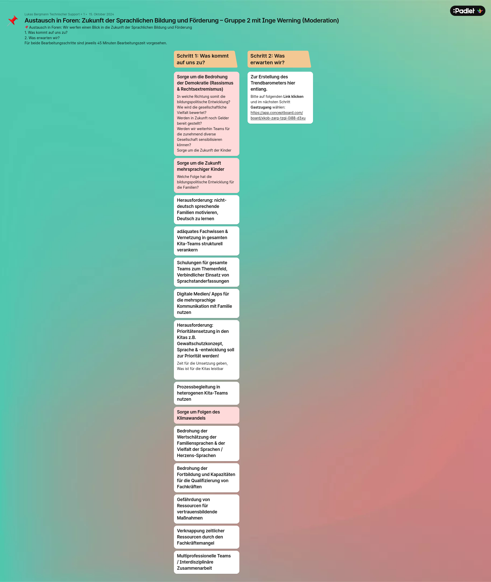 Austausch in Foren am Montag, 17. Juni 2024, zur Zukunft der Sprachlichen Bildung und Förderung: (II)