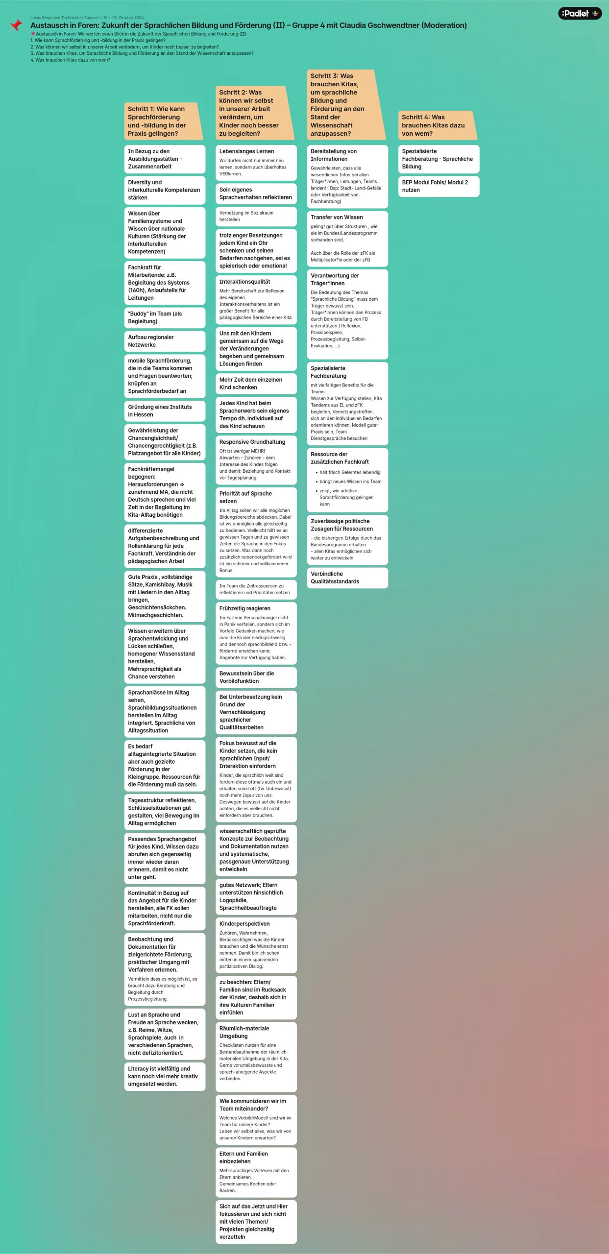 Austausch in Foren am Montag, 17. Juni 2024, zur Zukunft der Sprachlichen Bildung und Förderung: Was erwarten wir? (I)